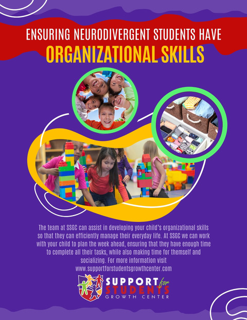 If they are not actively using this skill, then their rooms and other areas may become messy, causing extra stress and anxiety because they cannot find anything. This can then lead them to not starting or completing a task at all because they find it too stressful, only adding to the stress they feel. However, if they are prepared and have everything organized, they can feel confident in their ability to handle tasks such as finishing a school project or making time for socializing on their own, encouraging independence. Yet, this can be hard for some, especially those who have neurodivergent traits, but the Support for Students Growth Center can help them learn how to incorporate and utilize these necessary skills in their everyday lives.